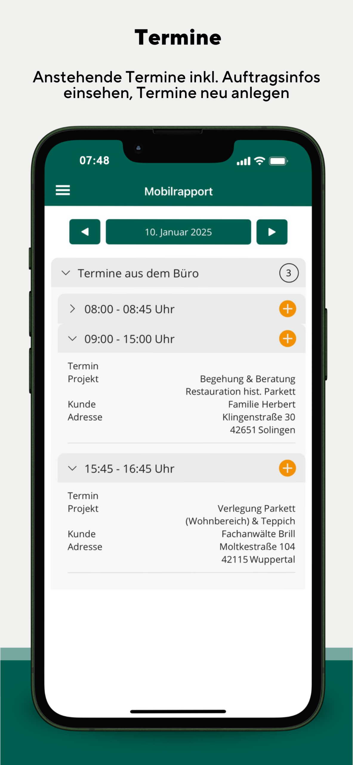- Termin- und Auftragsmanagement: Mit der App können Termine eingesehen, neue angelegt, Aufträge abgerufen, Arbeitsanweisungen gelesen und die Navigation zum Einsatzort gestartet werden.